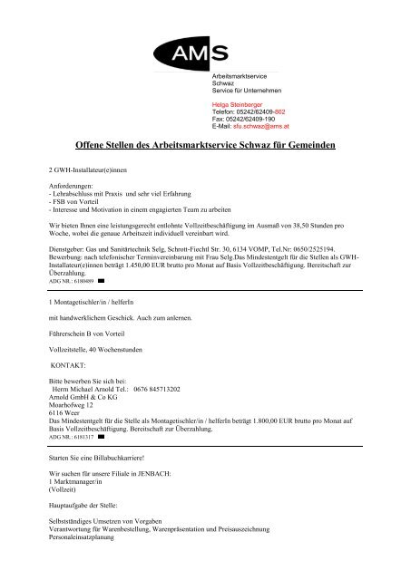 Ams Stellenanzeigen Gemeinde Hainzenberg