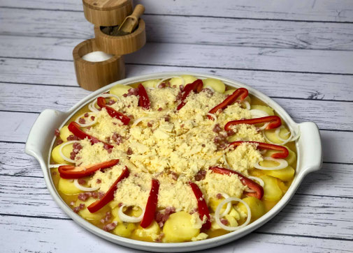 Heute kommt dafr ein besonders leckeres Exemplar nmlich mit Mrbeteig und cremiger Schmandfllung. Wenn wir No Knead Brot im Ofenmeister von Pampered Chef backen mssen wir darauf achten dass der weiche Teig nicht am Ton haften bleiben kann. Im kleinen Haushalt optimal fr Hauptgerichte wie Lasagne und Gratins.
